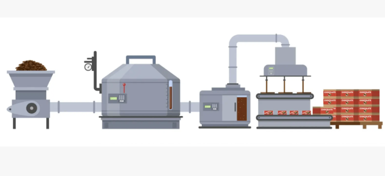*例如:巧克力要经过许多加工步骤,才会变成放在商店货架上的糖果。