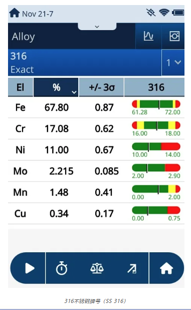在几秒钟内,Vanta分析仪就获得了金属碎片的化学成分分析结果,并将结果与其内置的合金牌号库中的某种特定合金牌号相匹配